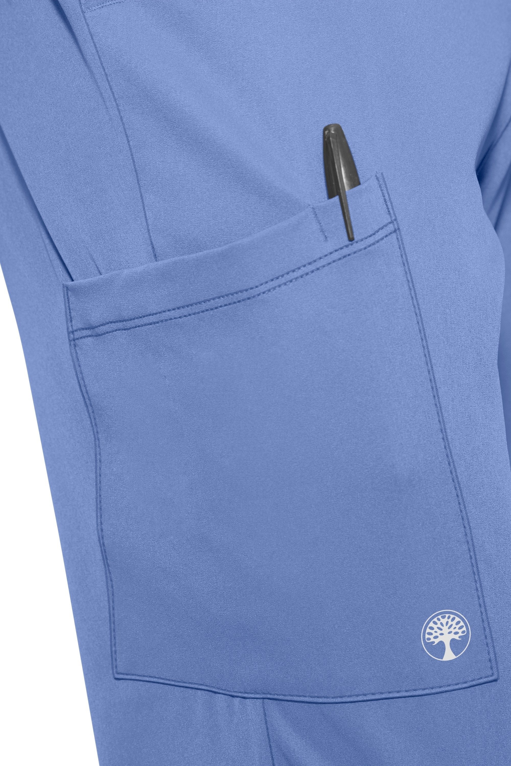 - مزين بلوقو الماركة على الجيب الجانبي للبنطلون.