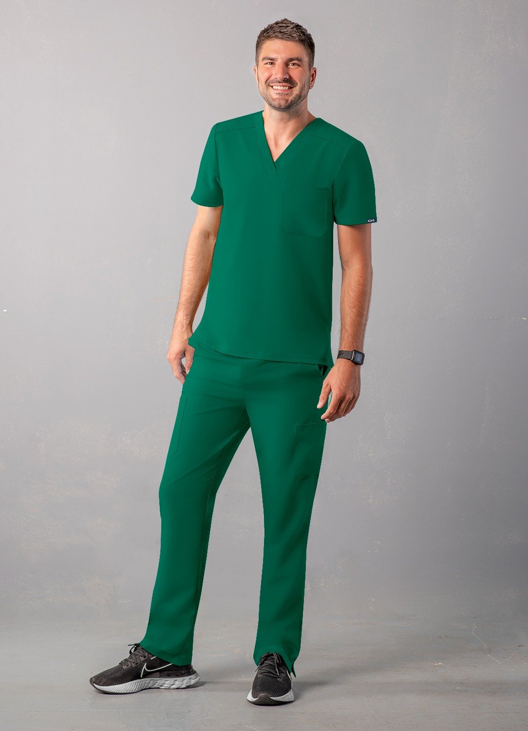 - يرتدي العارض المقاس ميديم (M).