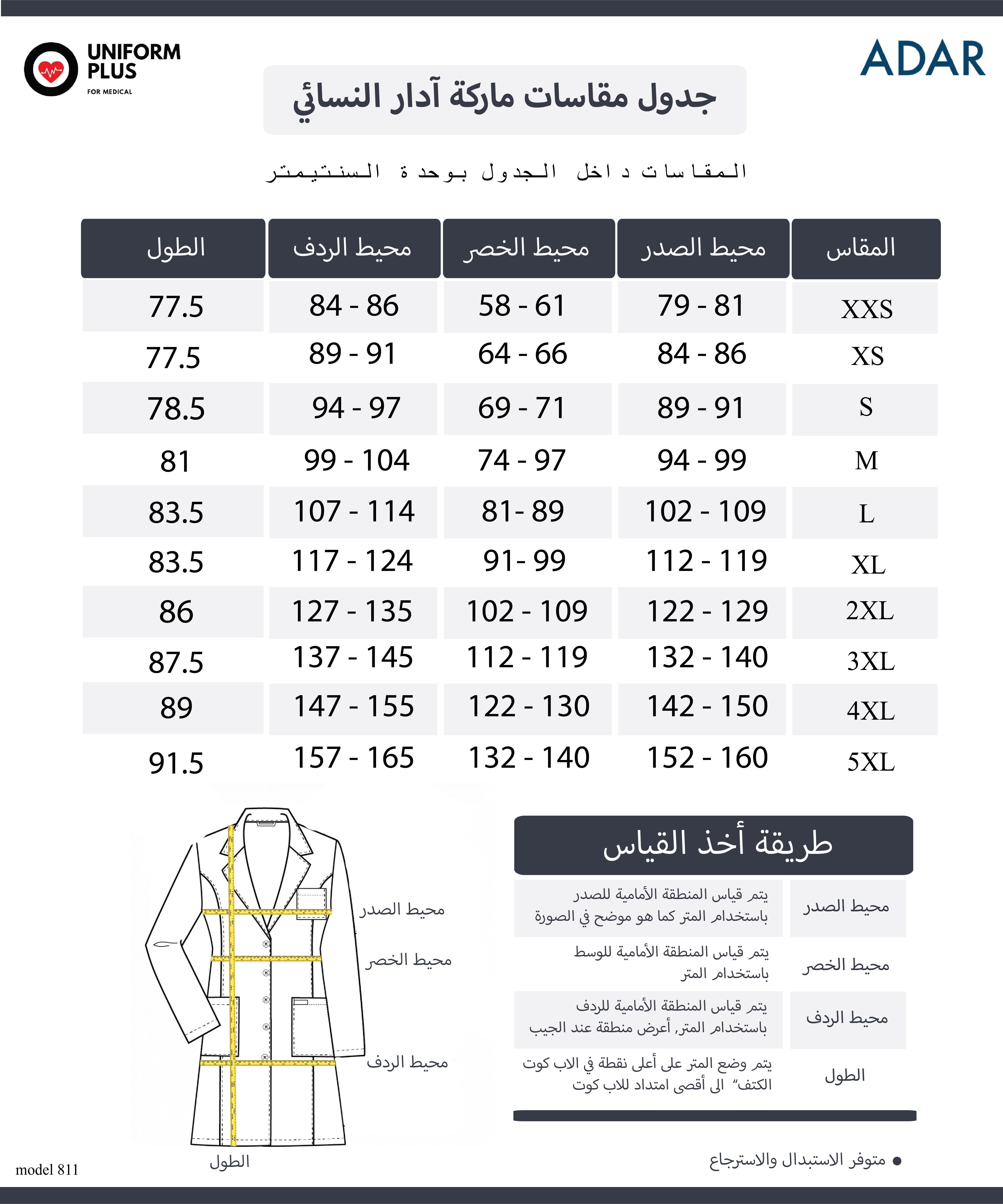 - ترتدي العارضة في الصورة لاب كوت مقاس S.