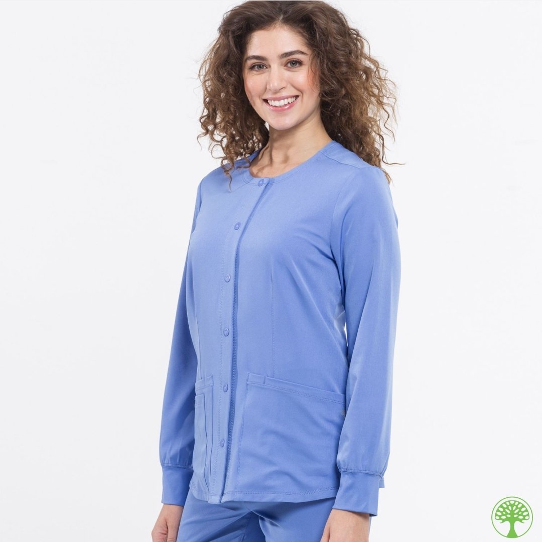 Healthcare professionals will appreciate the fit and feel of the HH Works Megan Scrub Jacket all shift long! Made with a high quality blend of stretch fabric, this snap front jacket offers a superior range of movement and comfort. Plenty of pockets give you lots of options to store essential instruments and accessories .