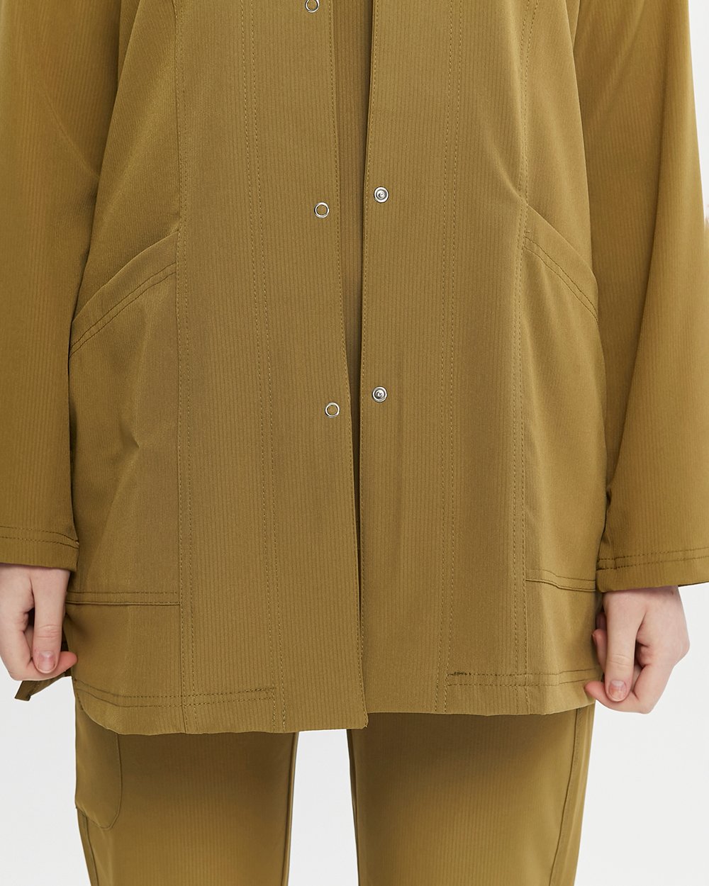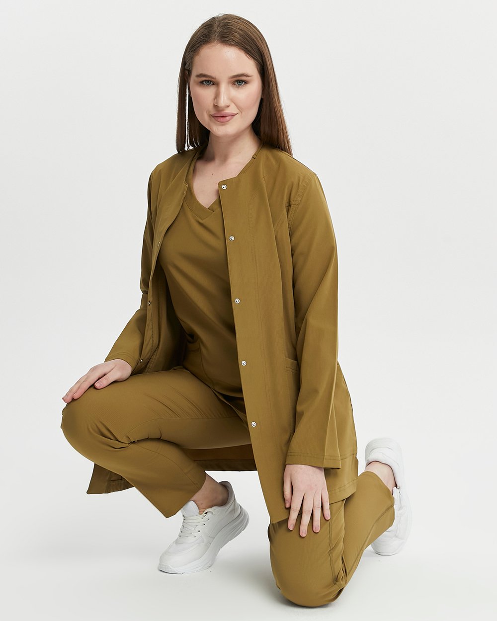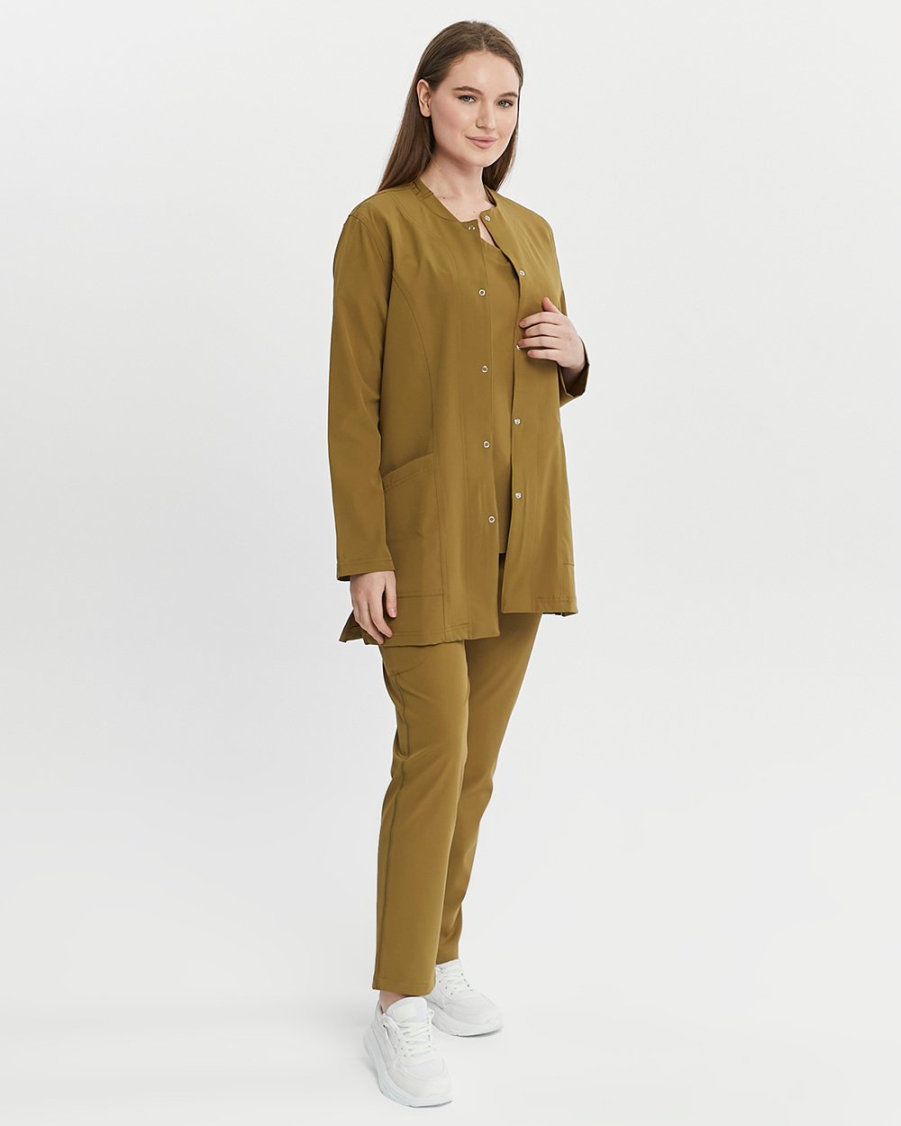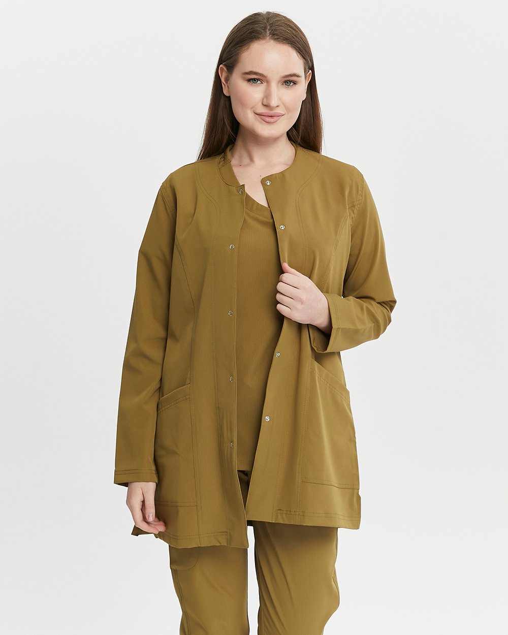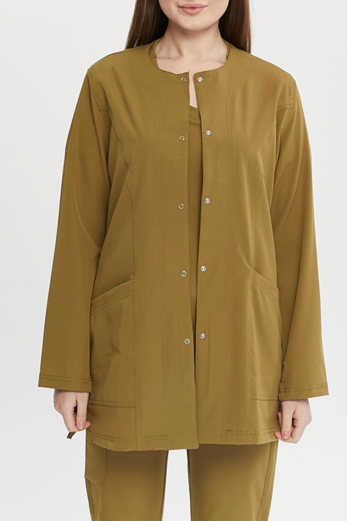 جاكيت سكراب طبي نسائي بتصميم عصري وعملي، جاكيت سكراب بكم طويل وطول مناسب للمحجبات ٨٠ سم، نقدم لك البلوزة سكراب هذه بقماش مرن وناعم وإغلاق أمامي كامل كباسين (طقاق)، تفاصيل التصميم متعدد الجيوب ونير الكتف الخلفي ودرزات أمامية تضفي مزيد من الأناقة للزي الطبي الخاص بك.