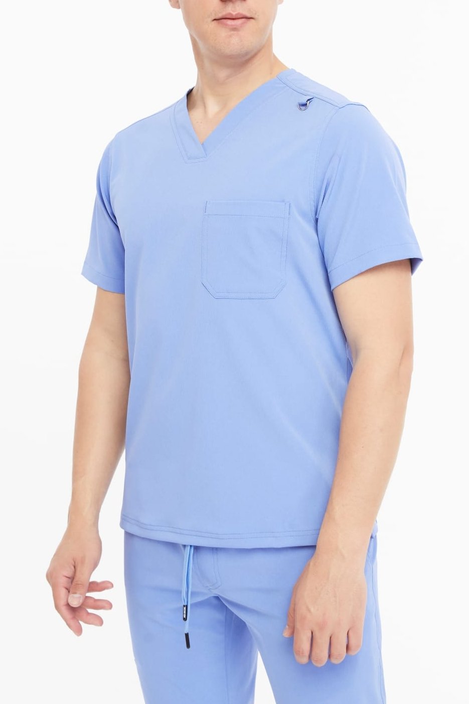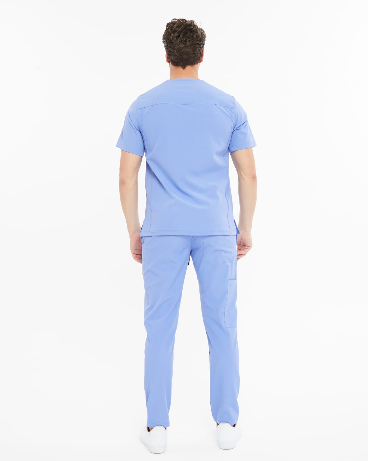 طقم سكراب طبي كامل بلوزة وبنطلون سكراب رجالي بتصميم عصري انيق، يتميز السكراب بمساحات تخزينية متعددةـ جيبان أماميان وجيب أعلى الصدر وبنطلون سكراب يشمل جيبان جانبيان، تصميم البلوزة سكراب بياقة على حرف V ، تعليقة اداة تستخدم في تعليق بطاقة العمل، تصميم السكراب بشكل بسيط وعملي مع فتحات جانبية للتهوية ولسهولة الحركة والراحة لأداء مثالي.