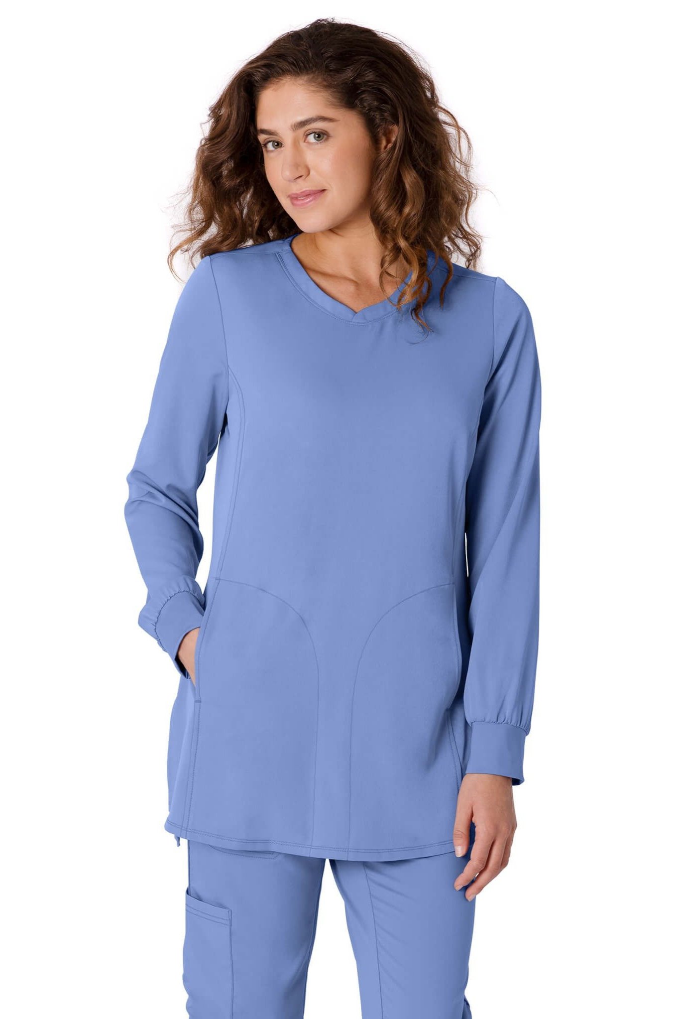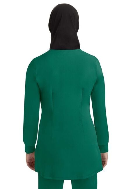 The Details : The Fatima Top is highlighted by long sleeves that completely cover your arms, providing warmth and covering you from fluid contact .