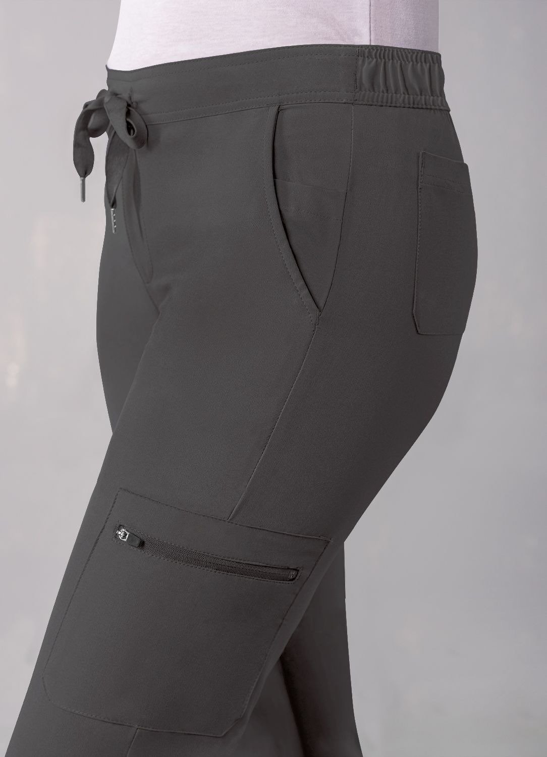 بنطلون أدار بتصميم عصري وساق نحيفة، خصر متوسط الارتفاع، يتميز بثمانية جيوب لتوفير أقصى قدر من التخزين الآمن. اثنان من الجيوب العميقة في الأمام، وجيب داخلي صغير على الجانب الأيسر، وجيب شحن كبير على الجانب الأيمن مع جيب مقص، وجيب كبير بسحاب للشحن على الجانب الأيسر وجيبان خلفيان منحنيان. مكتمل بحزام خصر مطاطي مرن ومريح، وحزام خصر أمامي مسطح مع رباط خارجي مطاطي ناعم يمكن التحكم به، فتحات جانبية لساق البنطلون وإغلاق مقوى، يوفر هذا البنطال الراحة والمرونة لتعزيز الأداء خلال نوبات العمل الطويلة.