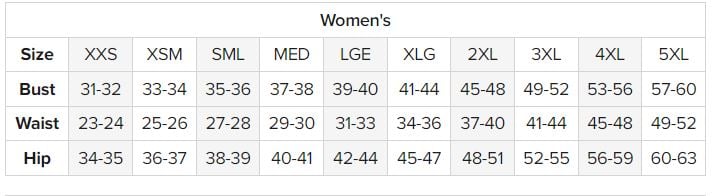 جدول مقاسات بالطو هيلينح هاندز فايبل النسائي (القياسات بالإنش).