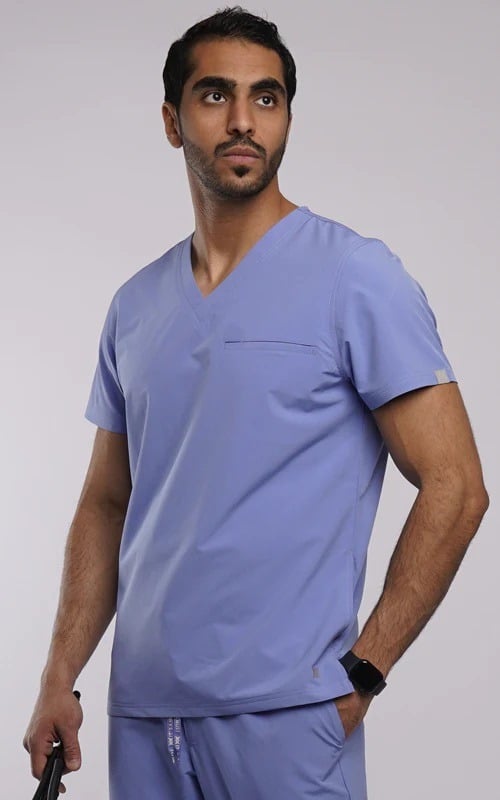 بلوزة سكراب طبي رجالي من ماركة ماست وير | MUST WEAR صممت لتكون من القطع المفضلة لديك ، تتميز بتفاصيل عملية وخامة خفيفة مقاومة للتجعد، توب ترست من ماست وير إختيار كل يوم، تصميم عصري وعملي برقبة عللا شكل حرف V وأكمام قصيرة، تشمل عدد ثلاث جيوب تخزينية لجميع إحتياجاتك مع فتحات جانبية لمويد من الحركة والأداء العملي.