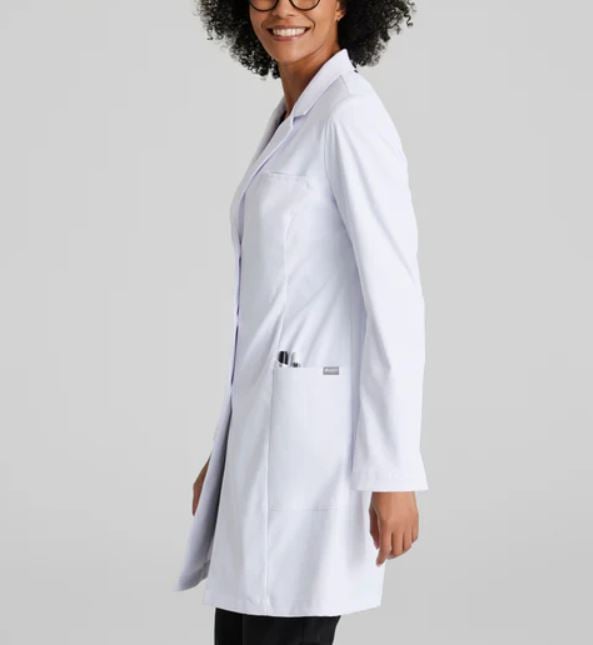 وفرناه لك الان! معطف طبي ماركة باركو النسائي Grace 35" المثالي الجديد بتصميم عصري يتميز بثلاثة جيوب تخزينية ومظهر جديد وجذاب يشع بالاحترافية، أداء مثالي لدوام عملك بقطعة عملية وإغلاق امامي بثلاث أزرار وتفاصيل الدرزات الامامية والخلفية تضفي مزيد من الأناقة، هذا اللابكوت الطبي من ماركة باركو المميزة هو إضافة استثنائية لخزانة الملابس الطبية الخاصة بك.