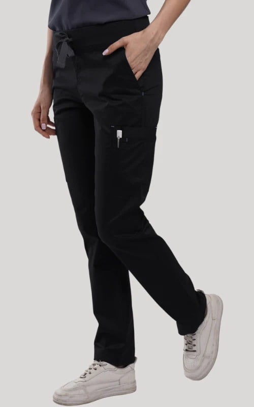 وفرنا لك كن فايروس فليكس بنطلون سكراب بقماش قطني عملي ومتين مع نسبة استرتش مطاط لأداء مثالى لدوام العملي لأوقات طويلة. مصمم البنطلون بساق مستقيمة مع حزام خصر مطاط من الخلف وحزام أمامي قابل للتحكم وتغير التعديل حسب مقاسك عدد كبير من جيوب التخزين تلائم جميع إحتياجتك التخزينية طوال اليوم. ستايل صمم خصيصاً ليمنحك الراحة في يوم عملك الطويل ويضيف على مظهرك بساطة وأناقة مثالية.