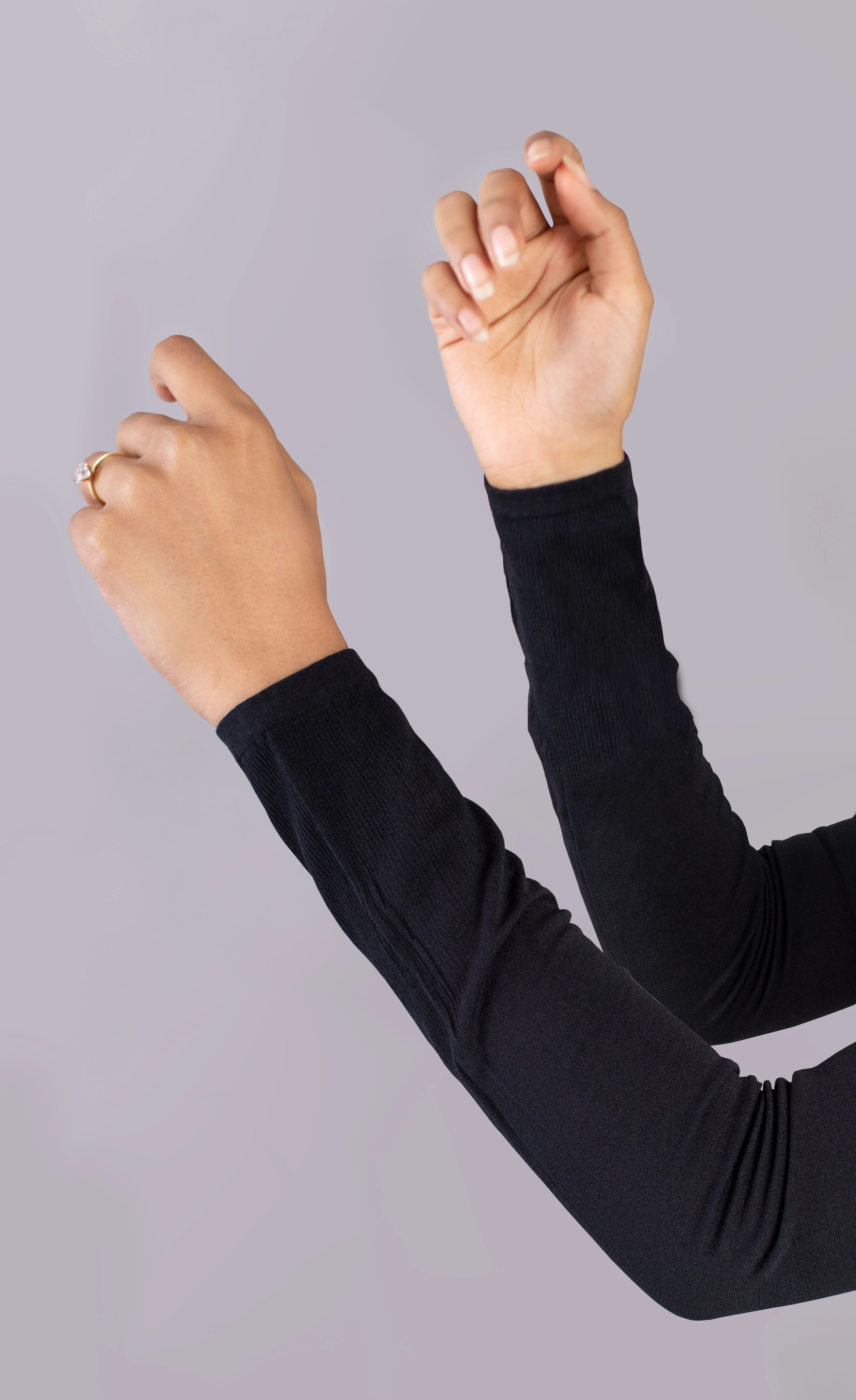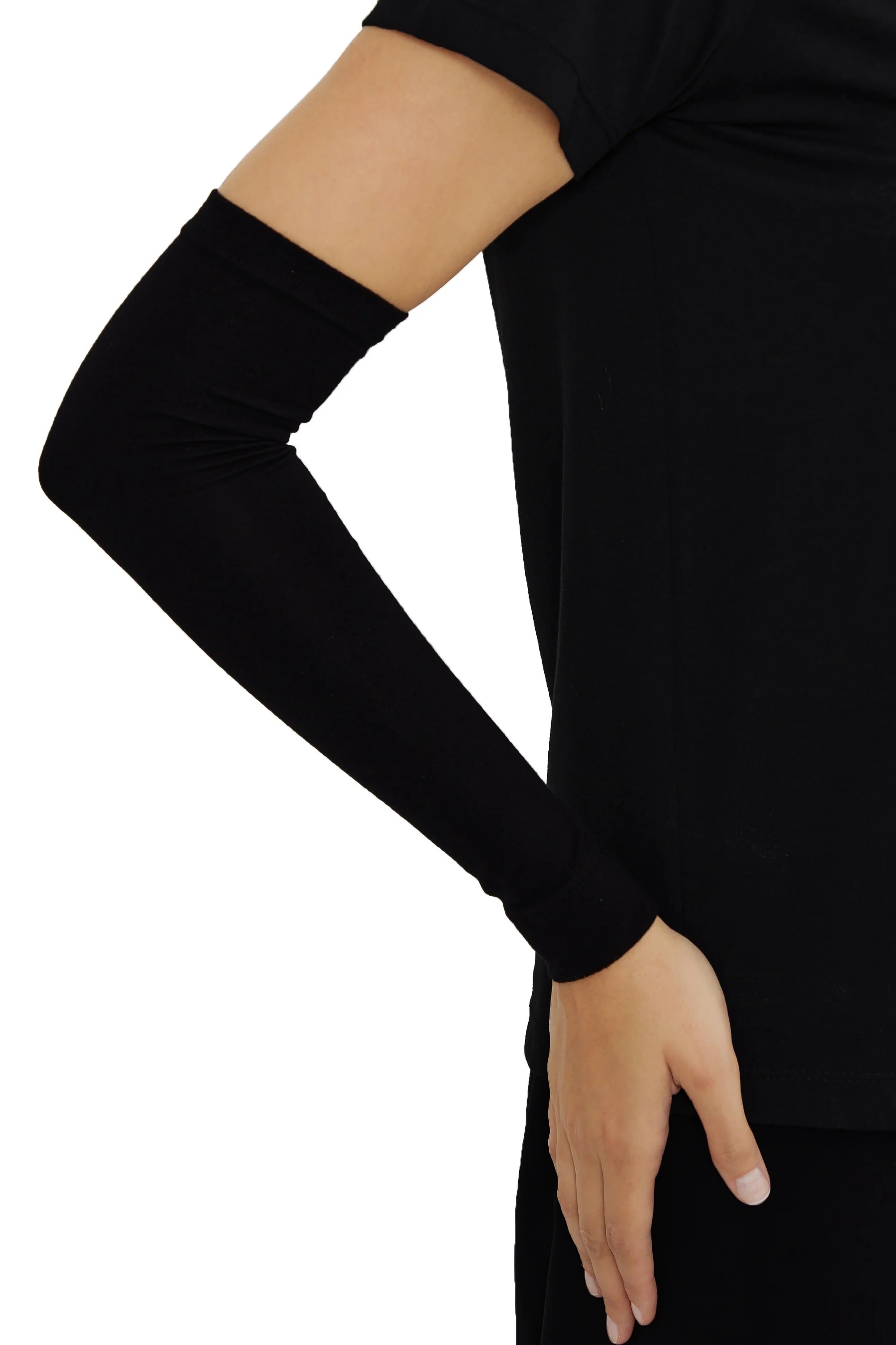 أكمام منفصلة هذه الأكمام مثالية للبس مع العباية لضمان تغطية اليد بالكامل كذلك مثالية للبس مع الأقمصة ذات الأكمام القصيرة، الخامة سترتش لتمنحك مظهر أنيق وعصري، صممت لتغطي اليد الى ما بعد كوع اليد، ستغنيك هذه الأكمام عن الحاجة للبس بلوزة داخلية بالصيف لتغطية اليدين، بإمكانك لبس الفساتين والأقمصة الخفيفة القصيرة وتغطية اليدين فقط بالأكمام.