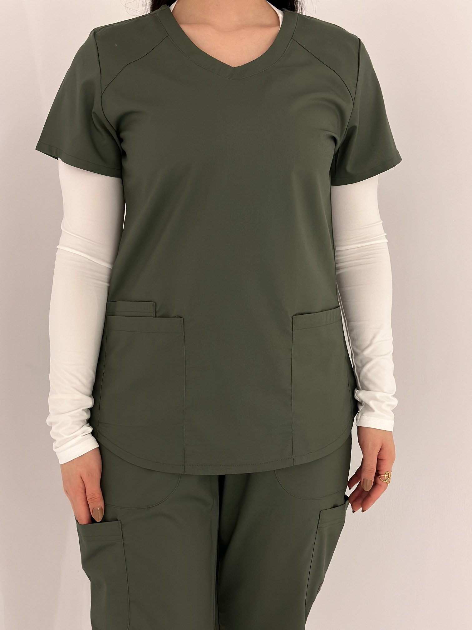 بلوزة سكراب طبي نسائي الجديدة من ماركة لاب ميد LAB MED توفرة الان بعدة ألوان وطول مناسب، قصة عصرية وتصميم عملي بسيط، توب سكراب النسائي يتميز بجيبين أمامين لتخزين إحتياجاتك، أكمام قصيرة مع تصميم ياقة السكراب على شكل حرف V ، كل هذا بالإضافة إلي قماش عملي ناعم وبارد مع فتحات تهوية ليوم عمل مثالي.