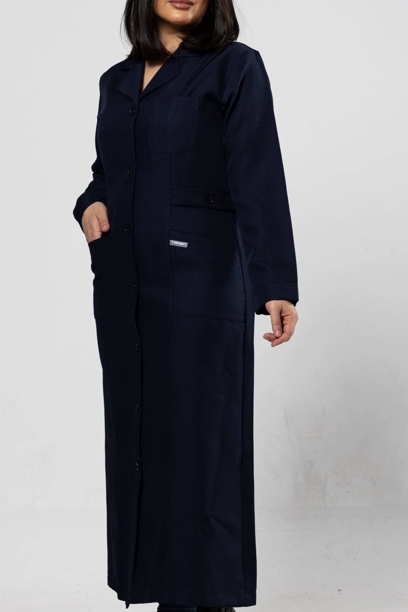 • لاب كوت طبي نسائي بطول كامل الجسم مناسب للمحجبات.