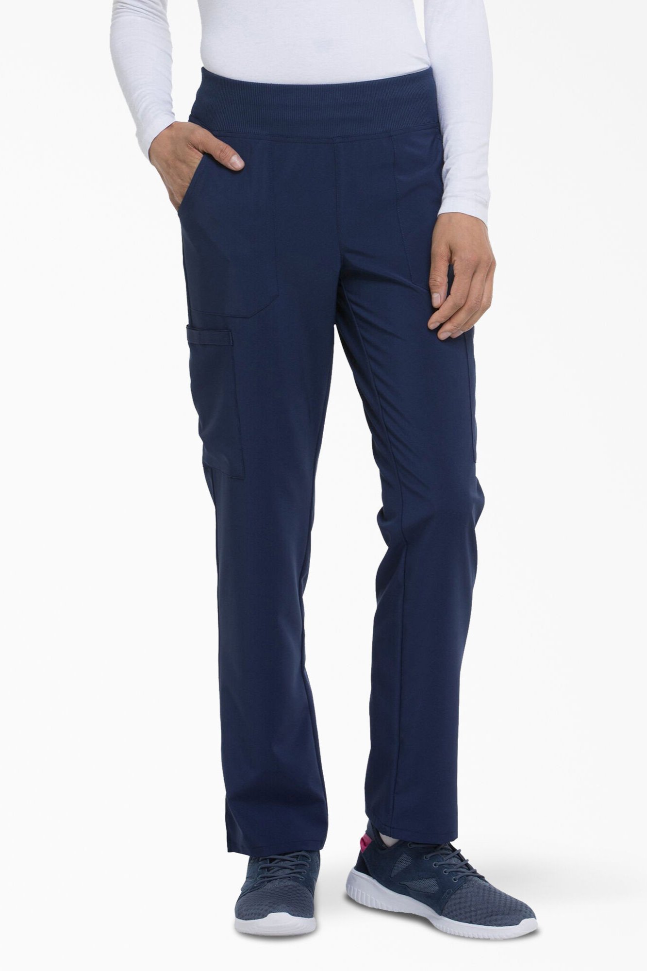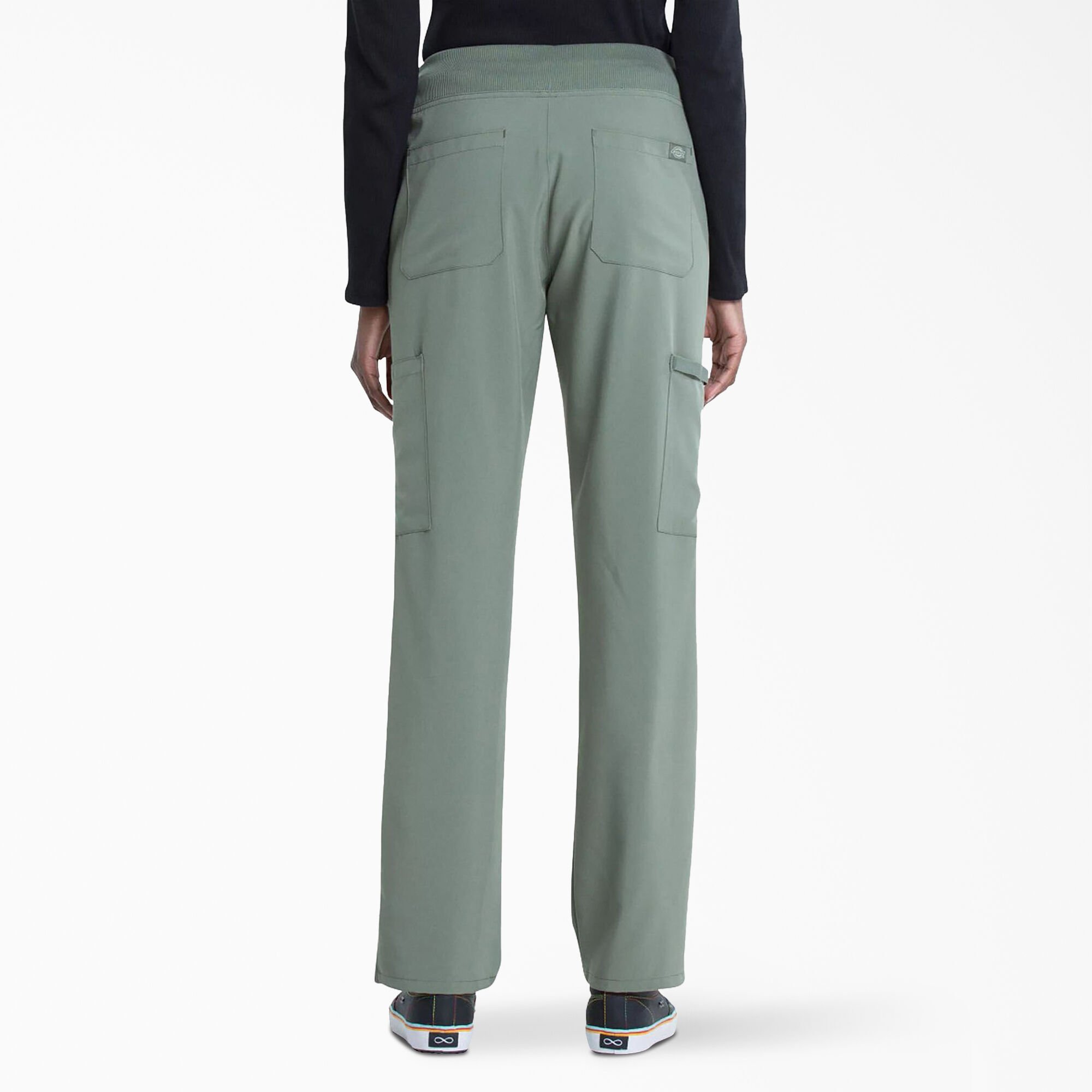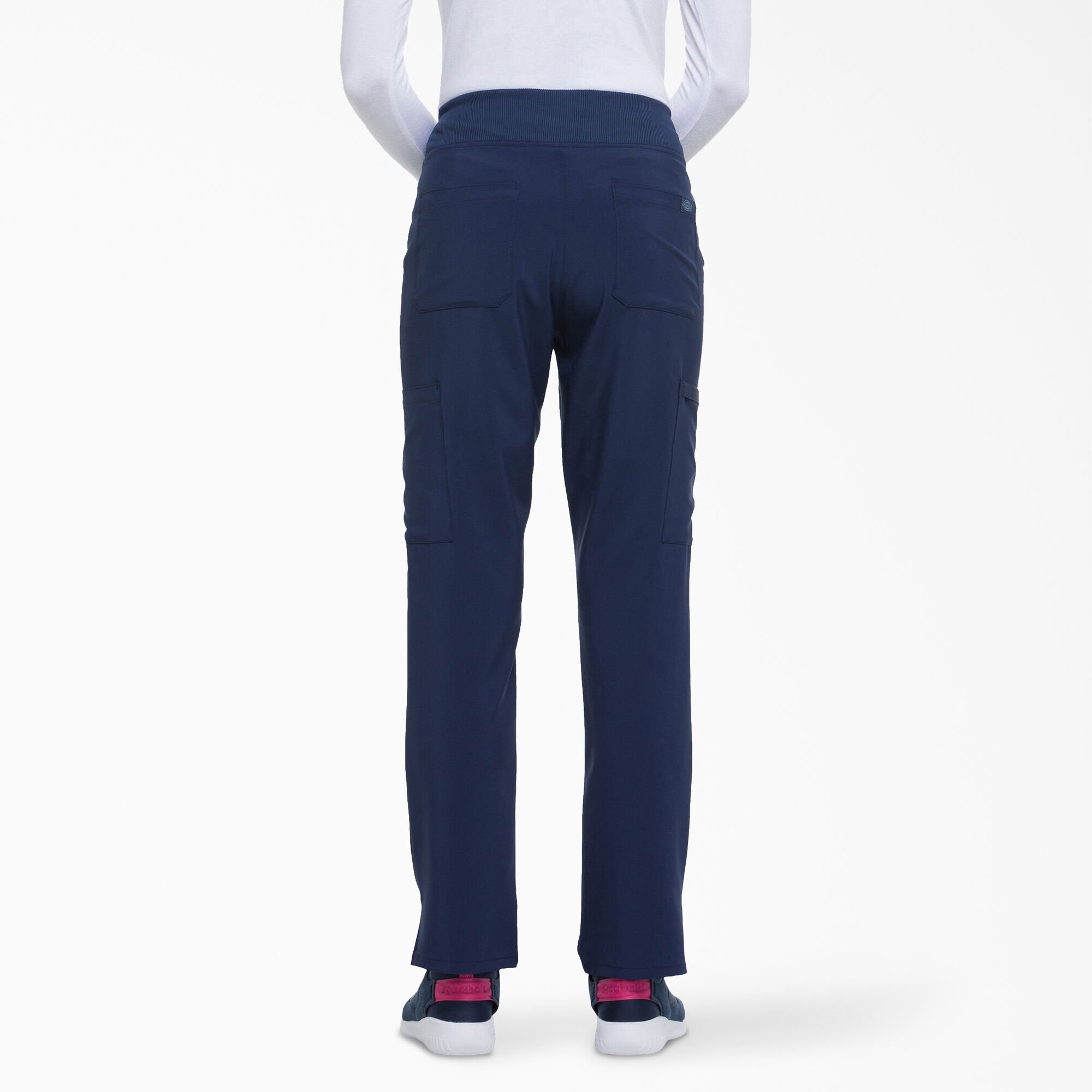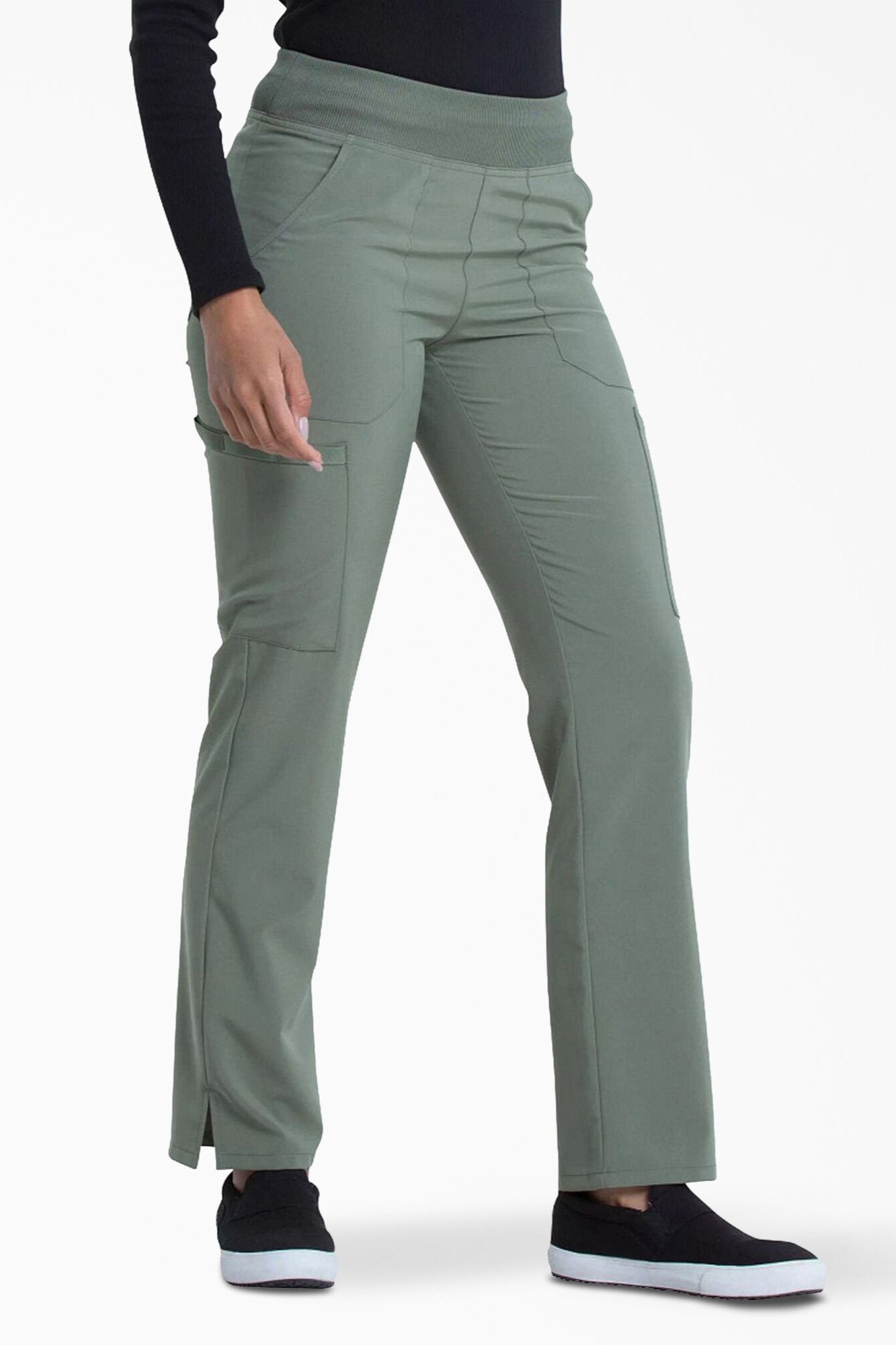 We have provided you with women's medical scrub pants from the Dickies brand, which is distinguished by its elegant designs and practical performance. Practical scrub pants with a tapered leg and a medium-rise waist. A comfortable design that suits difficult work times. Elastic and durable waistband and enough storage space for all your needs, designed with two front pockets, two cargo pockets, two back pockets, and a scissor pocket. In addition to side openings for unlimited comfort and movement, it ends with ultra-soft fabric for an exceptional experience and unprecedented success.