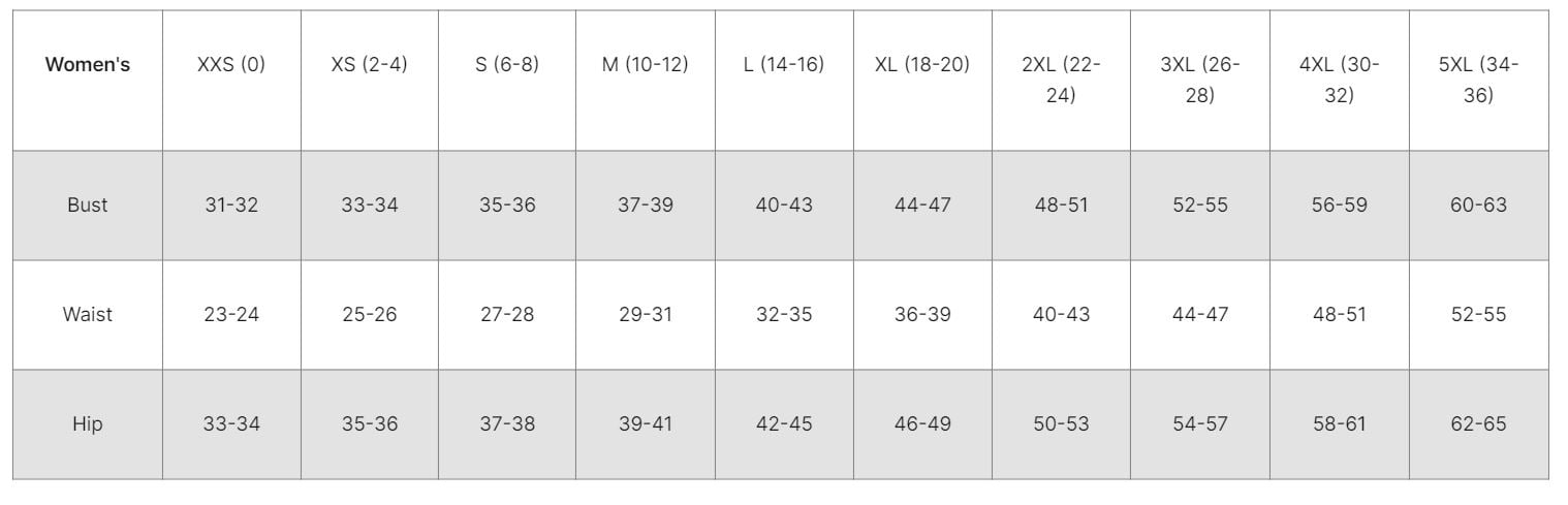 Dickies women's size chart