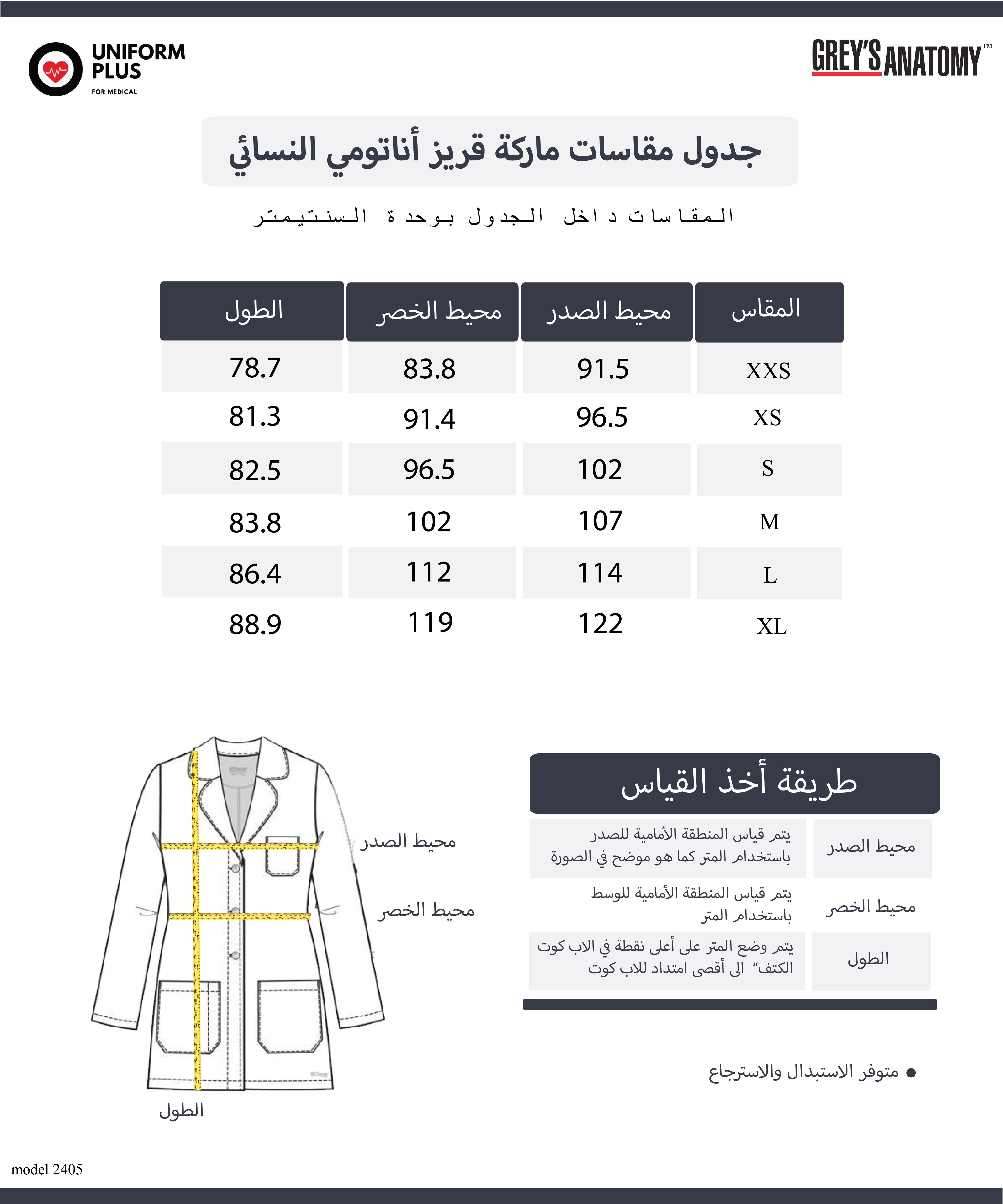 white Lab coat Grey's Anatomy with classic appearance, adds an attractive, practical look. the Lab Coat from Signature collection with elegant and professional design. lab coat model 2405.